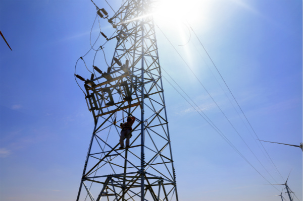 14至18日,灌西供電所轄區(qū)。為了保證7月18日順利完成和風(fēng)風(fēng)電西線線路工程,施工現(xiàn)場一片熱火朝天的景象,電力施工人員正頭頂烈日,揮汗如雨,正在緊張施工?!笆┕ぶ幸欢ㄒ⒁獍踩蚝冒踩珟Ш捅kU繩,防止中暑”灌西供電所所長,施工總負責(zé)人馬德松囑現(xiàn)場施工人員。烈日中野外施工既拼體力,更拼毅力,施工材料被曬得燙手,鐵塔只能戴手套才能攀爬,施工人員衣服汗透被曬干,曬干再次被汗透,施工環(huán)境十分艱苦。為了趕工程進度,施工人員戰(zhàn)高溫、斗酷暑,但沒有一個人叫苦叫累,經(jīng)過5天苦戰(zhàn),工程順利結(jié)束。