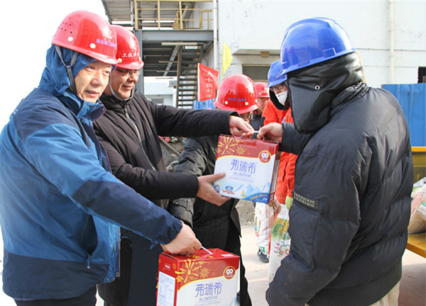 1月26日下午,公司經(jīng)理孫政權(quán),副經(jīng)理袁慶國一行深入利海10kV配電工程施工現(xiàn)場,走訪慰問一線職工,送去深切的關(guān)懷并將慰問品送到大家手中。
