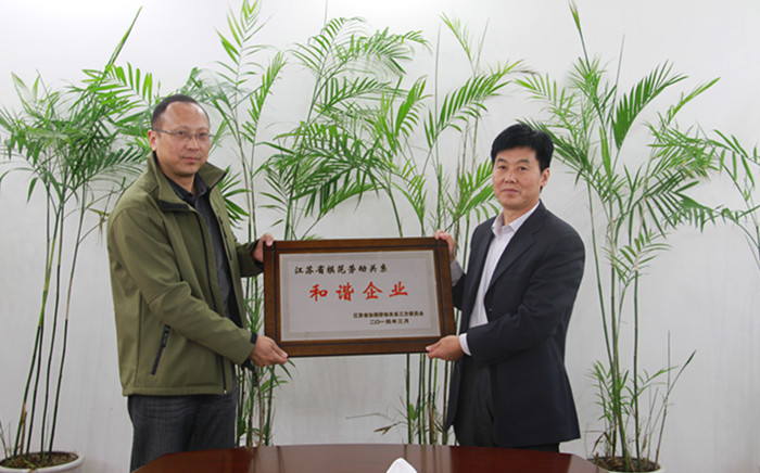 日前,江蘇省模范勞動(dòng)關(guān)系三方委員會(huì)辦公室印發(fā)《關(guān)于表彰江蘇省模范勞動(dòng)關(guān)系和諧企業(yè)與工業(yè)園區(qū)的決定》(蘇協(xié)勞【2014】2號(hào)),授予公司“江蘇省模范勞動(dòng)關(guān)系和諧企業(yè)”稱(chēng)號(hào)。