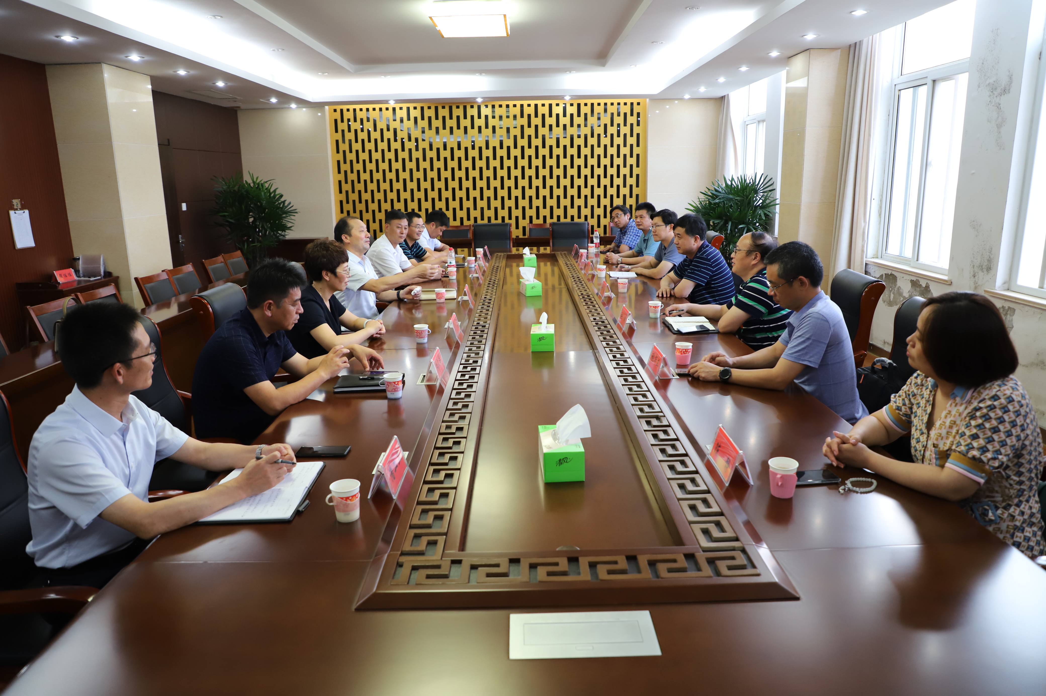 9月17日,兄弟單位連云港杜鐘新奧神氨綸公司調研組在黨委書記胡傳法帶隊下,來灌西觀摩學習交流工作,灌西投資公司黨委書記、董事長、總經理李國文等領導陪同交流。