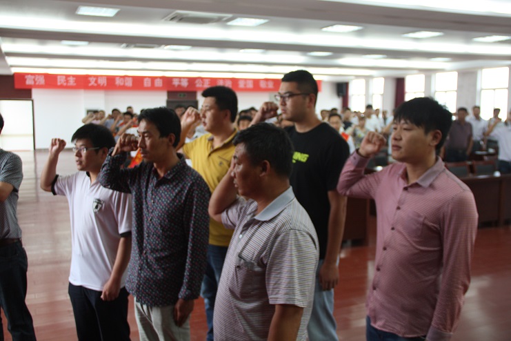 伴隨著雄壯的《義勇軍進(jìn)行曲》,表彰大會(huì)正式拉開(kāi)帷幕,在黨建工作部部長(zhǎng)卜海的帶領(lǐng)下,6名新黨員面對(duì)鮮紅的黨旗莊嚴(yán)宣誓,與會(huì)老黨員共同舉起右拳,重溫入黨誓詞。新黨員代表吳凱、老黨員代表靳國(guó)祥分別代表新老黨員做表態(tài)發(fā)言。隨后,黨委副書記王保平宣布表彰決定,對(duì)新河黨支部等5個(gè)先進(jìn)黨支部、吳慶剛等20名優(yōu)秀共產(chǎn)黨員和季興勝等5名優(yōu)秀黨務(wù)工作者進(jìn)行表彰。