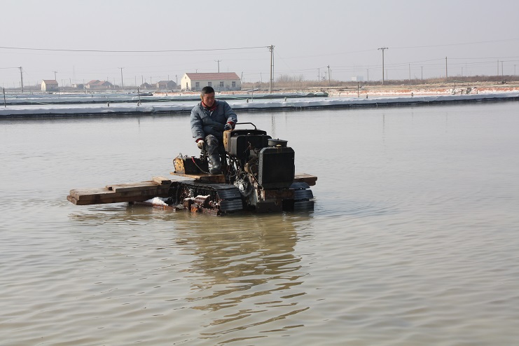 在4班現(xiàn)場,我們看到“唐三零”操作手正在嫻熟的駕駛著機(jī)器在鹽池內(nèi)緩緩移動,以認(rèn)真的態(tài)度,飽滿的熱情進(jìn)行著扒鹽工作。在不遠(yuǎn)處的鹽廩上,雪白的原鹽正通過扒鹽篩匯集而下,大廩工也不時的用分離板進(jìn)行疏導(dǎo)工作,潔白晶瑩的原鹽蔚然成廩。為了確保原鹽質(zhì)量,生產(chǎn)服務(wù)公司化驗室的工作人員還在扒鹽現(xiàn)場對鹽質(zhì)進(jìn)行跟蹤監(jiān)測。據(jù)介紹,在扒鹽設(shè)備上,今年日曬制鹽公司除了全面推廣使用五寸管道扒鹽外,又進(jìn)行了創(chuàng)新,將原來鹽、鹵分離篩上帆布引流裝置改為管道引流,這不僅有效降低了引流裝置的損壞幾率,減少了維修成本,更提高了設(shè)備的使用安全性。據(jù)了解,新河、埒南兩個制鹽分公司計劃共投入8臺扒鹽機(jī)組到此次扒鹽工作中來,目前已有七臺機(jī)組陸續(xù)出鹽,最后一臺機(jī)組也將在近日投入扒鹽工作,為原鹽銷售工作的正常有序開展提供保證。(封楊)