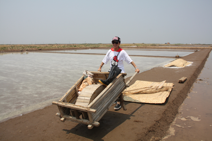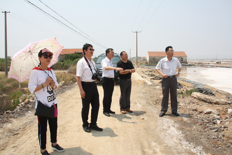 一行人先后到原民國時期公濟制鹽公司的辦公署遺址、早期產鹽平面灘和日曬制鹽公司的扒鹽現(xiàn)場參觀采風。具有百年歷史的原公濟制鹽公司辦公署是灌西鹽場地區(qū)現(xiàn)存最古老的建筑物,也是整個淮鹽地區(qū)僅有的遺跡,隨著歷史的變遷,房屋雖幾經改建,破損嚴重,但主體結構仍然保留了下來,是重要的淮鹽文化物證。位于鈣液復曬區(qū)的早期產鹽平面灘,是前不久為央視攝制組拍攝淮鹽發(fā)展歷史而改造的制鹽平面灘,復制了過去的制鹽工藝及生產過程,在平面灘上,大家拿起收鹽刮板,挑起鹽筐,手推小鹽車,一一體驗一下過去鹽工們的勞動方式。在新河制鹽分公司十班的扒鹽現(xiàn)場,機聲隆隆,潔白鹽廩不斷壯大,這是日曬制鹽公司上半年最后一臺正在扒鹽的機組,其余的七臺扒鹽機組已經先后完成的扒鹽任務,正在進行最后三塊格的扒鹽工作。大家一邊參觀,一邊拍照,通過古今不同時期產鹽方式對比,對過去鹽工們的艱辛勞動和現(xiàn)代制鹽技術的革新,生產力的提高都有了直接的感受,個個感觸頗深。(季興勝)