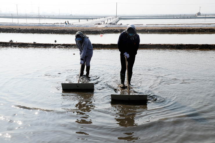 強化鹵水提制。密切關(guān)注天氣變化,緊緊抓住小滿前后的有利天時,科學(xué)安排走水線路,提高蒸發(fā)量的利用率。通過四輪壓格機器反復(fù)壓制整治滲漏池板,減少池板的鹵水滲漏。強化“三雨”操作,嚴(yán)格的塑池管理,加強塑布更新和修補,嚴(yán)控跑冒滴漏。提高公司灘地綜合利用率,充分利用廩基、排淡溝道等有效面積,利用高濃度淋板水,小鹽化鹵等窮制鹵措施,提制飽和鹵水,提升制鹵量。大力推廣應(yīng)用先進(jìn)的制鹵工藝,保障產(chǎn)出高質(zhì)的海水鹵。