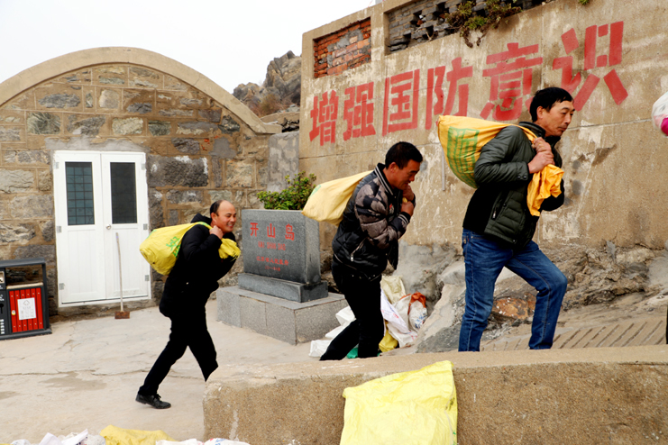 起來,不愿做奴隸的人們……”在開山島頂小廣場(chǎng)上,大家整齊列隊(duì)、唱響國(guó)歌、注目敬禮。鮮艷的五星紅旗迎風(fēng)飄揚(yáng),這個(gè)曾經(jīng)只屬于他們兩個(gè)人的升旗儀式,如今迎來了更多的追隨。守島民兵熱情地領(lǐng)著我們參觀面積僅0.013平方公里的開山島,講述著這些年王繼才夫婦守島的故事,從一盞煤油燈、一個(gè)煤炭爐、一臺(tái)收音機(jī)到自己掏錢購買的200多面國(guó)旗。沿著這一條條王繼才夫婦走過無數(shù)遍的巡島路,大家在看、在聽、在思索。今天我們?cè)谶@里,就是要學(xué)習(xí)他們愛崗敬業(yè)、艱苦奮斗、勇于擔(dān)當(dāng)?shù)某绺呔?。活?dòng)中,我們一線班組長(zhǎng)還在島上進(jìn)行了義務(wù)勞動(dòng),為守島民兵運(yùn)土種菜,有的兩人抬,有的上肩抗、也有的背的,他們不怕臟、不怕苦、不怕累,大家熱情高漲,以勞動(dòng)為榮,充分展現(xiàn)了我們灌西人的良好精神面貌。