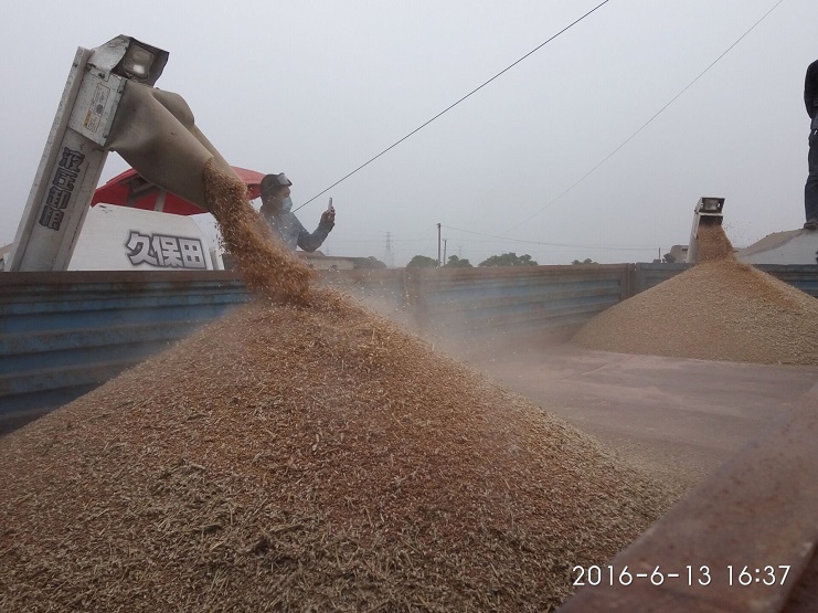 他立即會(huì)同農(nóng)業(yè)分公司的全體員工,開赴地頭,搶收小麥。聯(lián)合收割機(jī)馬力開足,看著一壟壟小麥被收割完,看著一袋袋小麥被裝運(yùn)上車,該公司參加搶收人員仍然忙碌著。天黑了,他們打開車燈和手提電燈,頂著高溫、忍受著蚊蟲的叮咬,目標(biāo)只有一個(gè),在雨到來(lái)前一定要完成小麥搶收任務(wù)。