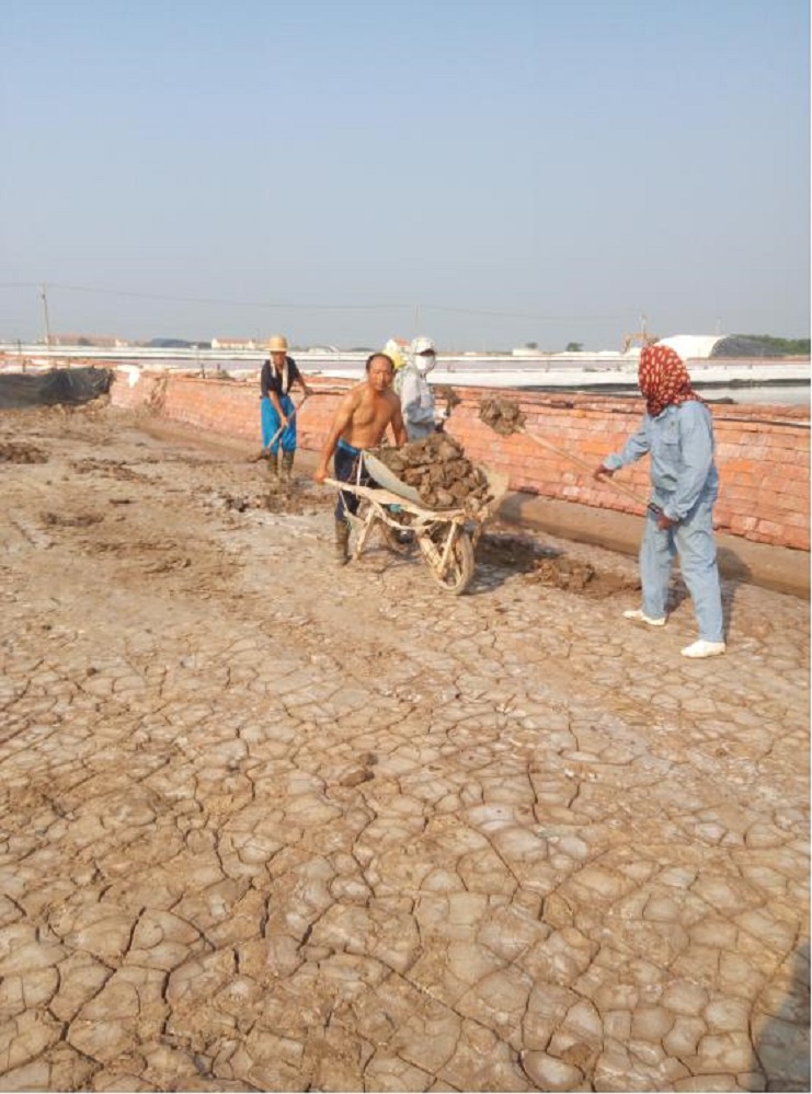 連續(xù)的高溫讓人熱得喘不過氣來,正當人們躲在空調下享受清涼的時候,日曬制鹽埒南制鹽分公司的廣大干群仍堅持奮戰(zhàn)在生產一線,搶抓有利天時組織生產?;畈辍⒊?、整理池板、做天溝各項工作穩(wěn)步有序推進。汗水浸濕了他們忙碌的身影子影。