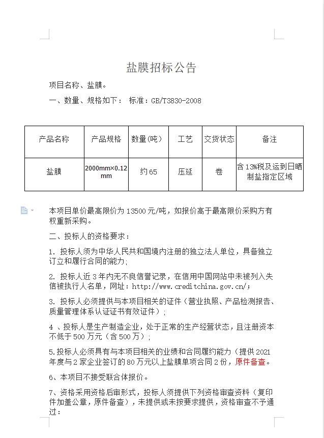 鹽膜招標公告