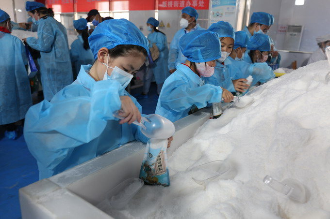 小朋友們首先參觀了包裝鹽車間生產(chǎn)線,對(duì)制鹽過(guò)程有了直觀的認(rèn)識(shí),接著來(lái)到雪花鹽車間體驗(yàn)手工包裝,提升參與感、獲得感。此次參觀體驗(yàn)活動(dòng),讓小朋友近距離感受家鄉(xiāng)的淮鹽魅力,很好的傳承了淮鹽文化。我公司作為省級(jí)文明單位,近年來(lái),積極履行社會(huì)責(zé)任,多次與灌南縣尹蕩村、連云區(qū)大竹園村等單位開(kāi)展文明共建,爭(zhēng)做文明使者,彰顯國(guó)企擔(dān)當(dāng)。(金宣)