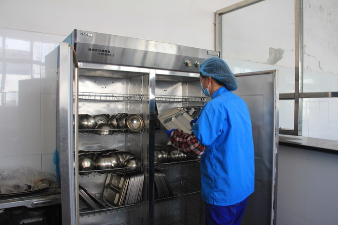 加強職工就餐管理,每天對餐具統(tǒng)一消毒