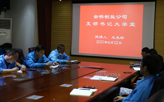 為進一步推動公司黨史學習教育走深走實,公司黨委組織開展“支部書記大學堂”活動。6月22日,加工鹽車間黨支部書記王先樹以學習黨史“悟思想、辦實事、開新局”為主題,結合工作實際,為各支部黨員干群上了一堂生動的黨課。