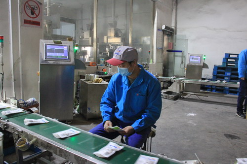 包裝鹽車(chē)間生產(chǎn)班長(zhǎng)王東海巡視生產(chǎn)線