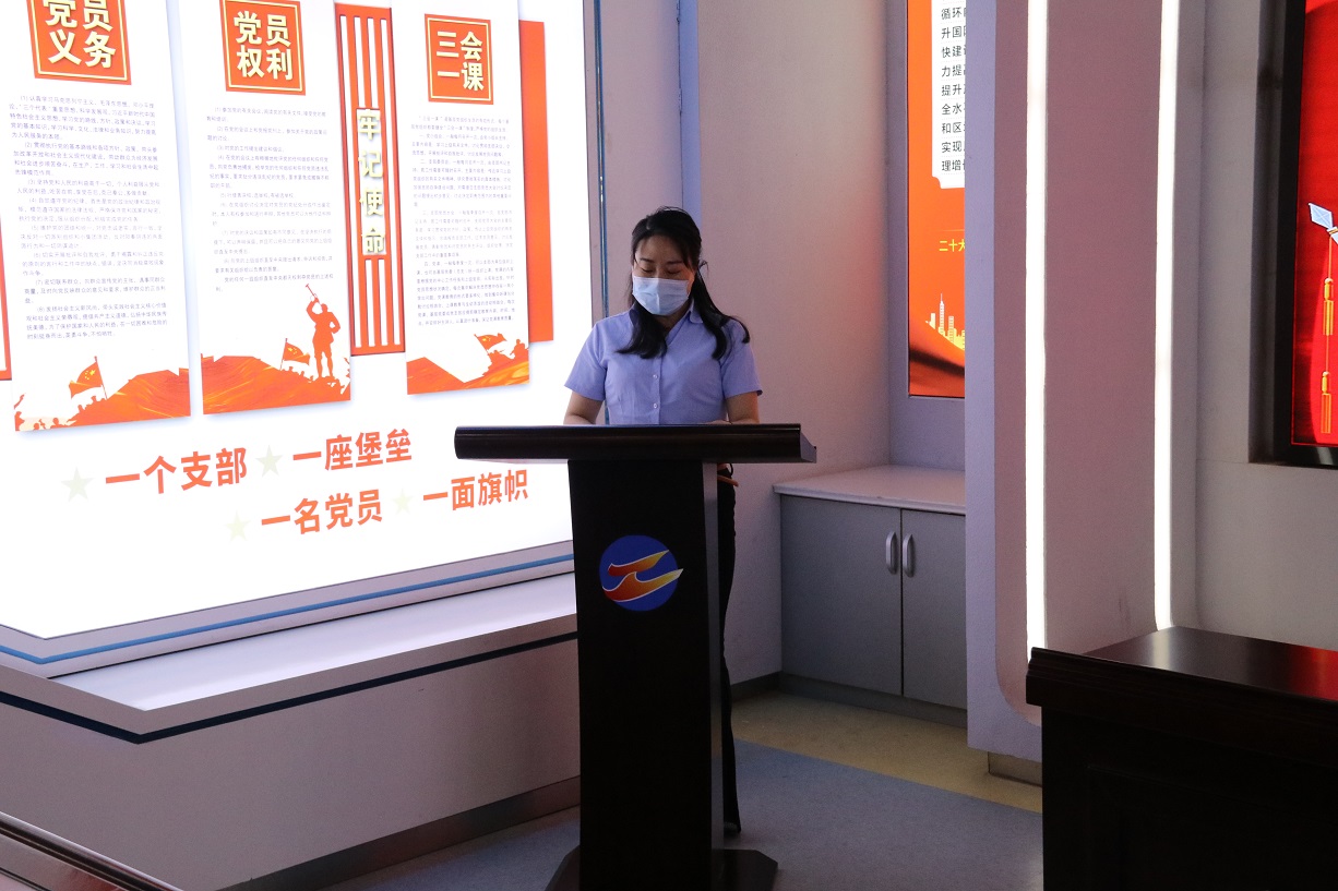 隨后,支部書記徐兵為大家上了一堂題為“增強黨性修養(yǎng),筑牢使命擔(dān)當(dāng)”的專題黨課,他結(jié)合黨的歷史及當(dāng)前國內(nèi)國際局勢,生動的闡釋黨的革命精神和光輝歷程,旨在讓新黨員感受到了黨的神圣,進一步激發(fā)黨員的愛國熱情和奮斗精神,激勵廣大黨員黨員以自身的實際行動積極實踐誓詞,這堂黨課對于新老黨員們來說,都是一次寶貴的學(xué)習(xí)機會。黨課最后,支部書記徐兵帶領(lǐng)新老黨員一起,面向鮮紅的黨旗,舉起右拳,重溫入黨誓詞。