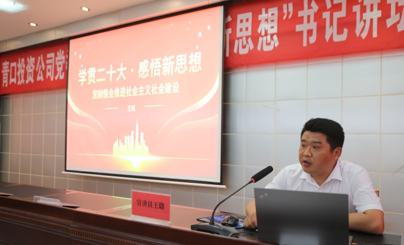 為深入學(xué)習(xí)宣傳貫徹黨的二十大精神,通過“學(xué)”精神、“講”精神、“用”精神,迅速把廣大黨員干部的思想和行動統(tǒng)一到黨的二十大精神上來,5月16日下午,青口投資公司“學(xué)貫二十大 感悟新思想”書記講壇火熱開講。公司在家領(lǐng)導(dǎo),基層黨支部書記、分會主席以及機(jī)關(guān)全體管理人員參加。