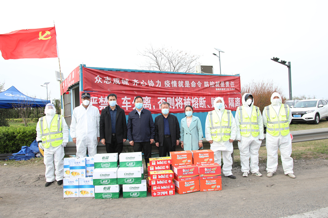 4月14日下午,青口公司黨委副書記、工會(huì)主席梁永,副總經(jīng)理?xiàng)钍孛髑巴咚俪鋈肟跈z查檢疫卡點(diǎn),為黃沙坨社區(qū)防疫一線工作人員以及下沉社區(qū)的公司黨員志愿者送上慰問品,傳達(dá)組織的關(guān)心關(guān)愛。
