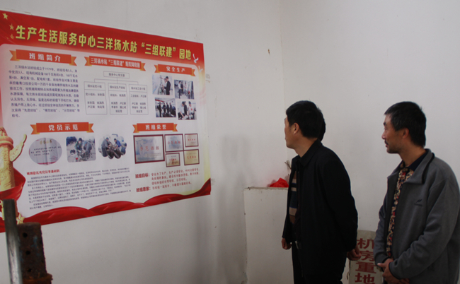 在生產(chǎn)生活服務(wù)中心揚(yáng)水站班組,與會(huì)人員實(shí)地觀摩了“三組聯(lián)建”陣地建設(shè),詳細(xì)聽取了黨小組組長(zhǎng)關(guān)于“三組”在聯(lián)建、聯(lián)動(dòng)、聯(lián)學(xué)等方面的開展情況和取得的成效。