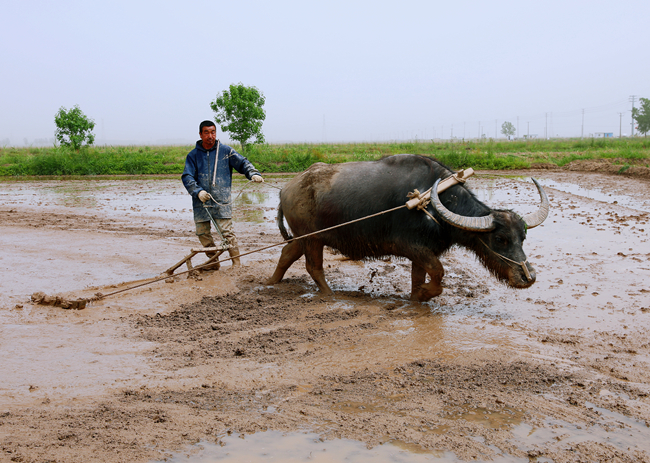▲不用揚(yáng)鞭自?shī)^蹄,深耕細(xì)作促生產(chǎn)。田間還會(huì)遇見牛蹄疾步穩(wěn)、耕地拖平難得一見的傳統(tǒng)生產(chǎn)場(chǎng)面,對(duì)于小部分高低不平的田塊用牛找平較為方便,保證了在春耕各環(huán)節(jié)上做到精益求精。(仲偉彬、劉 楊)