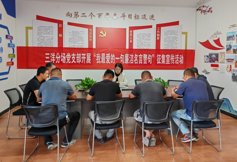 在中秋、國(guó)慶即將到來(lái)之際,為增強(qiáng)黨員干部廉潔意識(shí),營(yíng)造濃厚的清廉文化氛圍,將黨風(fēng)廉政建設(shè)向縱深推進(jìn)。9月14日上午,三洋分場(chǎng)黨支部在黨員活動(dòng)室開展“我最喜愛(ài)的廉潔名言警句”征集宣傳活動(dòng)。