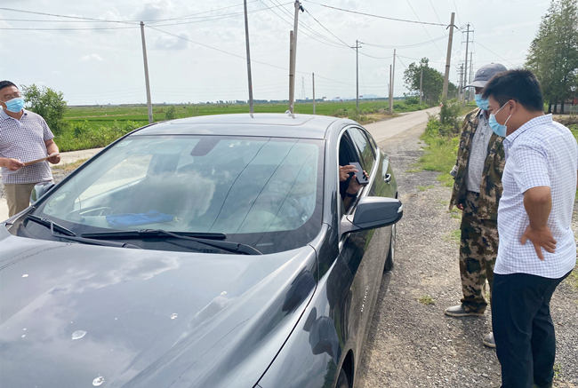 ? ? ? ?“請(qǐng)問(wèn)你們是從哪里來(lái)?請(qǐng)戴好口罩,出示行程碼、健康碼。”大新農(nóng)場(chǎng)黨支部黨員與部分職工一道,堅(jiān)決當(dāng)好疫情防控的“守門員”,在對(duì)外來(lái)車輛登記進(jìn)入人員信息,檢查健康碼、行程碼,開(kāi)展疫情防護(hù)知識(shí)宣傳。