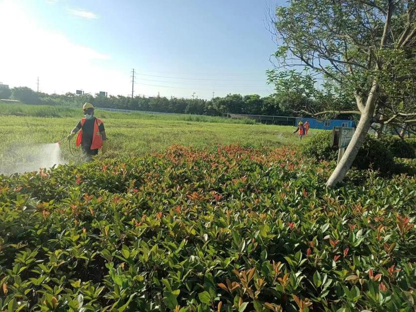 熱浪中的奉獻(xiàn),用責(zé)任詮釋擔(dān)當(dāng)。益豐園林分公司全員無(wú)懼熱浪,迎“暑”而上,奔波在園區(qū)聯(lián)瑞新材公司、格林東方酒店庭院等綠化工程現(xiàn)場(chǎng),打藥殺菌、修剪草坪、栽種球類植物及花卉,確保工程按時(shí)按質(zhì)完成;盛達(dá)市政分公司員工,毅然決然地頂著高溫,堅(jiān)守在轄區(qū)道路養(yǎng)護(hù)現(xiàn)場(chǎng),搶抓道路維護(hù)、人行道磚修復(fù),搶修電纜、護(hù)欄、雨水井蓋工程;翔立分公司路燈維修人員在高溫“烤”驗(yàn)下,頂烈日、斗酷暑,對(duì)花果山大道、東方大道、黃海大道等轄區(qū)主要路段,堅(jiān)持每日白天檢修、夜間巡查。