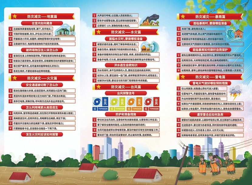 5月12日是我國第17個全國防災減災日。今年防災減災日主題是:“人人講安全、個個會應急——排查身邊災害隱患”,5月12日至18日是防災減災宣傳周。
