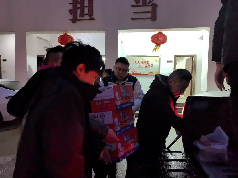 夜間,工會(huì)主席傅健一行現(xiàn)場(chǎng)看望慰問(wèn)清除冰雪戶外工作人員,為他們送上方便面等慰問(wèn)物資,并囑咐他們?cè)谛燎诠ぷ鞯耐瑫r(shí)做好防寒保暖、安全防護(hù)。為在冰天雪地中堅(jiān)持工作的一線工人送去了溫暖和關(guān)懷。