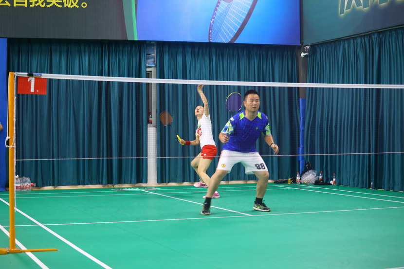 下午進(jìn)行的混雙淘汰賽迎戰(zhàn)實力強(qiáng)勁的對手集團(tuán)機(jī)關(guān)、神特、氨綸公司隊,我臺北公司隊打出亮眼表現(xiàn)。比賽中,隊員毫不退讓,盡力抓住每個得分機(jī)會。在混雙“雙保險”失利一組的情況下,另一對選手張海寧、袁桂芹穩(wěn)扎穩(wěn)打,逐漸打出了氣勢,后場高球、網(wǎng)前輕吊、大力扣殺……他們以犀利的進(jìn)攻直下三城,成功殺入決賽。
