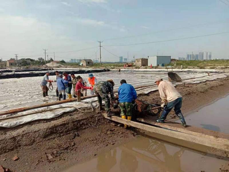 養(yǎng)殖池邊,工作人員仔細(xì)的對河道清淤進(jìn)行現(xiàn)場勘查,確保排水通暢。