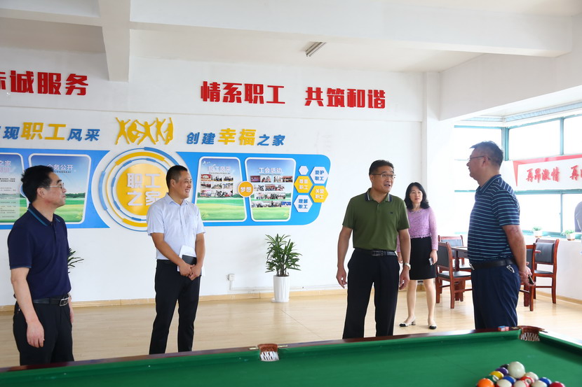 9月2日集團(tuán)公司工會(huì)來臺(tái)北公司開展工會(huì)工作專題調(diào)研。集團(tuán)領(lǐng)導(dǎo)劉承志帶隊(duì),調(diào)研組一行首先來到臨達(dá)公司,參觀職工建家工作開展情況。劉主席對(duì)職工文體活動(dòng)、文體設(shè)施、困難幫扶等一一詢問,并對(duì)今后發(fā)展作出指導(dǎo)。