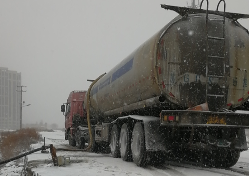 從不因天氣影響而中斷的鈣液銷售工作,風(fēng)雪中仍在如火如荼的進(jìn)行著。負(fù)責(zé)鈣液開(kāi)票發(fā)放人員仔細(xì)的檢查并認(rèn)真注視液位流量計(jì),嚴(yán)謹(jǐn)記錄,嚴(yán)格遵守“一車一票制度”,滿載鈣液的槽罐車在風(fēng)雪中緩緩前行,乘載著“瑞雪兆豐年”的希望!