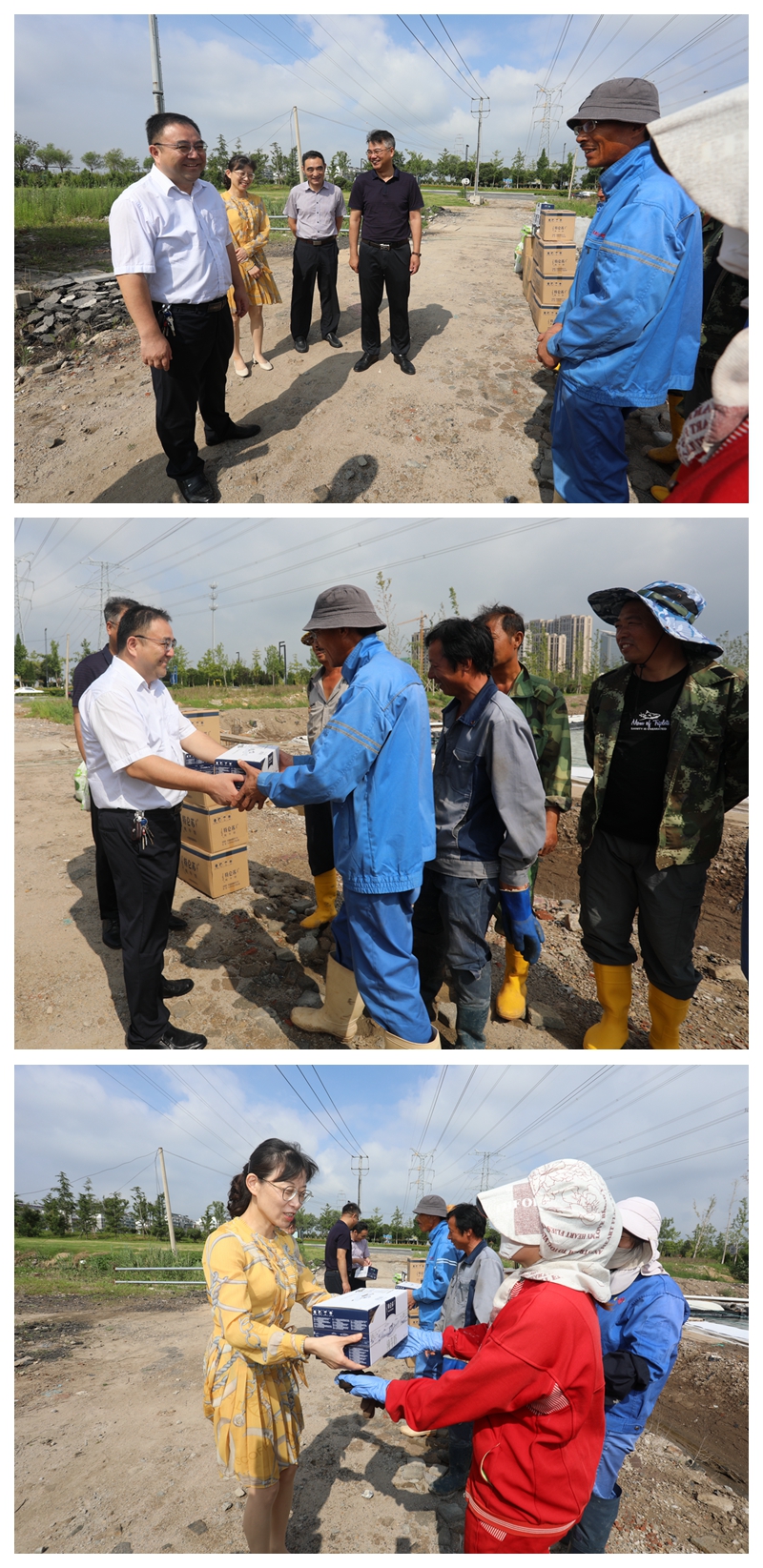 “大家辛苦了!天氣炎熱,注意防暑”“要避開高溫時段作業(yè),靈活調(diào)增上班時間,身體才是第一位”楊龍董事長和汪群書記將防暑消暑物品送到生產(chǎn)現(xiàn)場每一位職工手里,同時關切叮囑大家注意身體,做好防暑工作。