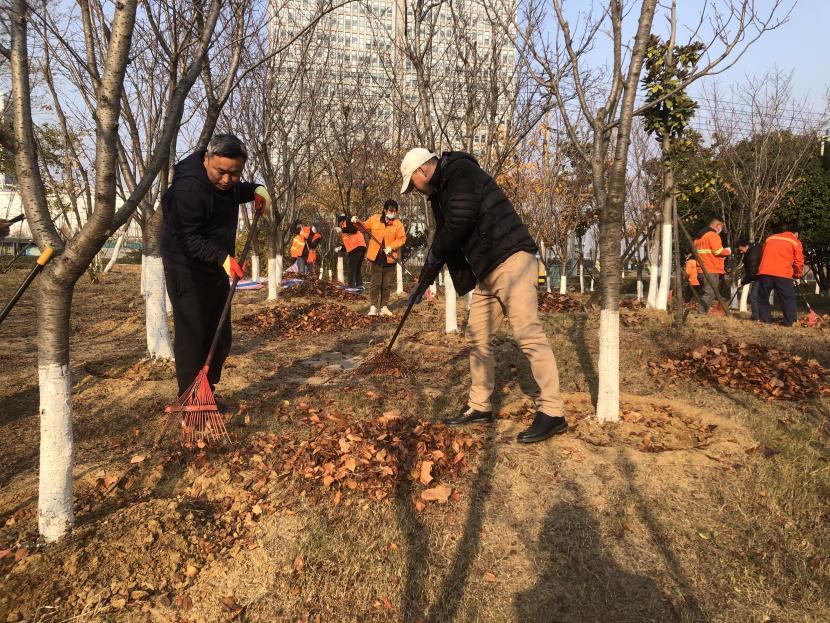 活動(dòng)現(xiàn)場(chǎng),黨員同志、積極分子分為兩撥,分別從創(chuàng)智綠園北門和東門對(duì)園內(nèi)雜草落葉進(jìn)行清除。在戴好手套,做好防護(hù)、防凍措施的同時(shí),紛紛拿著掃帚、耙子等工具,統(tǒng)籌安排、分工勞作,齊心協(xié)力,有的用掃帚掃落葉、有的用袋子裝落葉、有的用耙子摟落葉……大家忙得熱火朝天,充分發(fā)揚(yáng)不怕臟、不怕苦、不怕累的黨員先鋒本色,創(chuàng)智綠園內(nèi)處處是同志們清理雜草落葉的身影,構(gòu)成了一道亮麗的風(fēng)景線,經(jīng)過(guò)一個(gè)多小時(shí)的辛勤勞動(dòng),兩撥隊(duì)伍順利“會(huì)師”,沿途雜草落葉被清理得干干凈凈,公園環(huán)境也得到明顯改善。