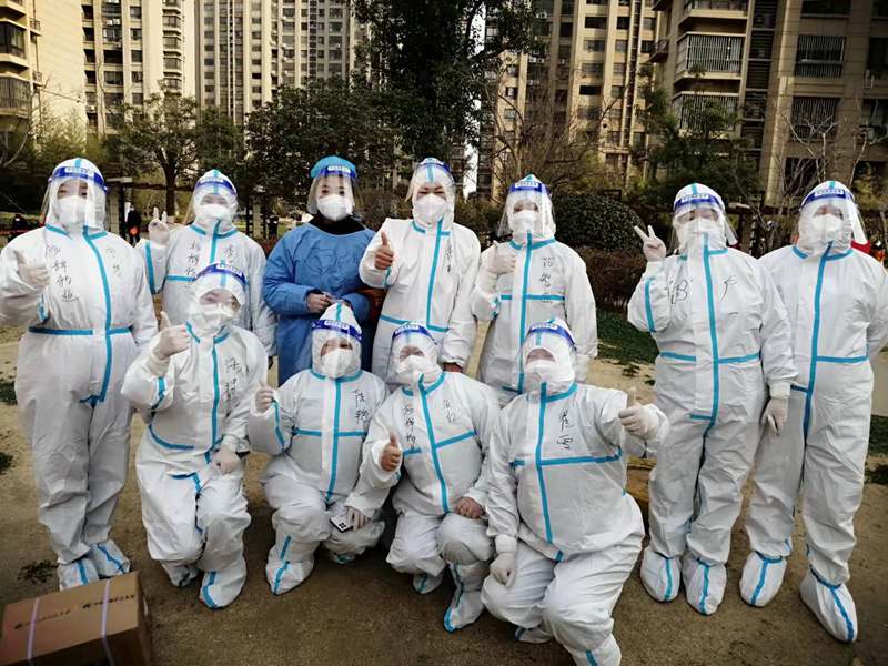 ? 3月12日,晴,8:00到達社區(qū)核酸采樣點,準備上崗,社區(qū)負責人給我們進行了“防護服穿脫”及防疫知識的講解學習等一系列十分細致地培訓后,有點興奮的穿好“大白服”,帶上手套、頭套和面罩,社區(qū)阿姨還幫我在衣服上畫上了可愛的涂鴉;