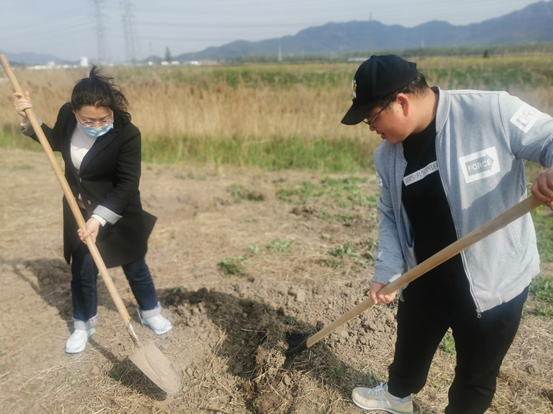 乍暖還寒,春意萌動。大家三、兩人一組分工合作、默契配合,各個環(huán)節(jié)銜接有序,每道工序認(rèn)真細(xì)致,嚴(yán)格按照栽種標(biāo)準(zhǔn),確保植一顆活一顆,栽一片綠一片。在大家共同努力下,一顆顆樹苗立于地間,煥發(fā)出勃勃生機,形成一道靚麗的風(fēng)景線。