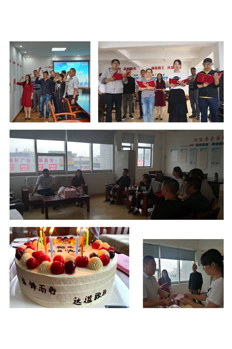書記致辭。為黨員同志送上暖心祝福話語(yǔ),向職工群眾提出爭(zhēng)先奮進(jìn)希冀,替臨達(dá)公司樹立更進(jìn)一步目標(biāo)。重溫誓詞。進(jìn)一步增強(qiáng)黨性,牢記黨的宗旨,恪守黨的紀(jì)律,堅(jiān)定理想信念,充分發(fā)揮先鋒模范作用。贈(zèng)送賀卡。書記親手為黨員同志們制作賀卡、寫下寄語(yǔ),送到黨員同志們的手中。集體誦讀。全體職工高聲朗誦了詩(shī)詞《我的祖國(guó)》,激發(fā)愛(ài)國(guó)熱情,陶冶愛(ài)國(guó)情操。活動(dòng)最后,公司工會(huì)為職工精心準(zhǔn)備了豐盛的生日餐,讓職工深深體會(huì)到來(lái)自“娘家人”的溫暖。