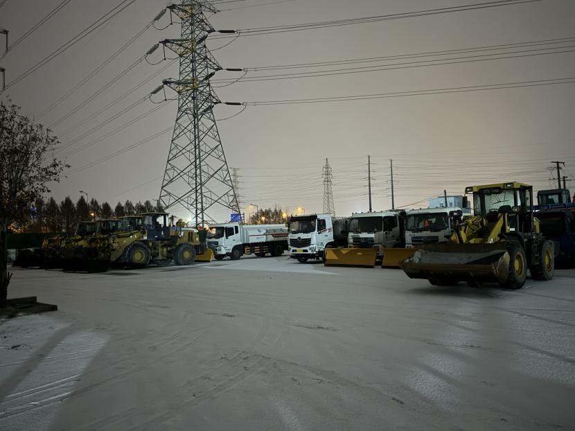 ? ? 方式升級,效果顯著。本次掃雪除冰,結(jié)合了2023年12月及2024年2月初的經(jīng)驗,由“先灑后鏟”升級為“先鏟后灑再鏟”的作業(yè)方式,由3輛雪鏟車進行多輪除雪,確保積雪厚度不超過3厘米,待積雪清除后,換上2臺撒布機進行融雪劑覆蓋,確保不產(chǎn)生較厚積冰,再由鏟車進行深層除冰,保證路面不上凍。