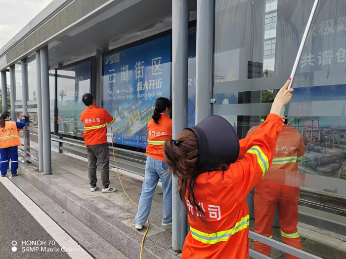 ? ? ? ?集中勞動(dòng)“有力彰顯”。學(xué)習(xí)活動(dòng)結(jié)束后,保潔、機(jī)關(guān)黨支部20多名黨員匯集新區(qū)核心區(qū)域徐圩大道,南京路等路段,開展黨員義務(wù)勞動(dòng)?;顒?dòng)現(xiàn)場(chǎng),大家分工明確,相互配合,無(wú)懼高溫天氣,上下?lián)]動(dòng)雙臂,沖洗站臺(tái)玻璃和清理廣告標(biāo)語(yǔ),經(jīng)過(guò)兩個(gè)多小時(shí)持續(xù)奮戰(zhàn),徒手清洗站臺(tái)20多個(gè),座椅40多個(gè)。(楊波)