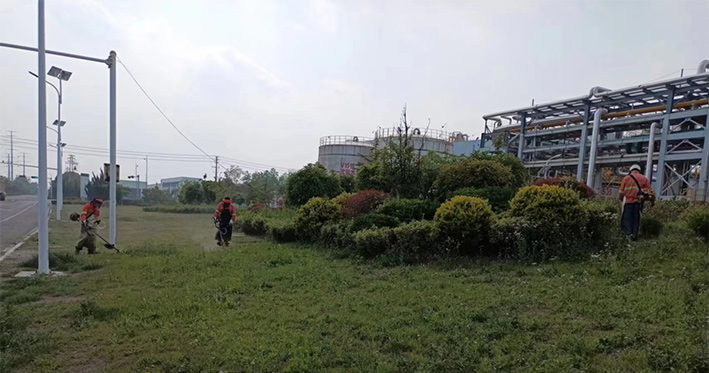 板橋工業(yè)園區(qū)祥和路、云港路、瑞和路等路段,隨處都可見到綠化工人忙碌的身影,他們不畏辛苦,搶時間、抓進(jìn)度,對綠籬、綠化苗木進(jìn)行修剪造型。園區(qū)路邊,機(jī)器轟鳴,除草工作有條不紊。綠化工人們頭戴防護(hù)帽,架著割草機(jī),動作嫻熟,割草效率極高。三人一排、兩人一對,齊頭并進(jìn),戰(zhàn)線推進(jìn)過的地方?jīng)芪挤置?,留下一片整齊的坡面,賞析悅目。經(jīng)過多日持續(xù)奮戰(zhàn),已經(jīng)完成綠地雜草清理15萬平方米,綠籬修剪3萬平方米任務(wù)。為高標(biāo)準(zhǔn)完成二季度綠化管養(yǎng)目標(biāo)奠定基礎(chǔ)。(劉永)