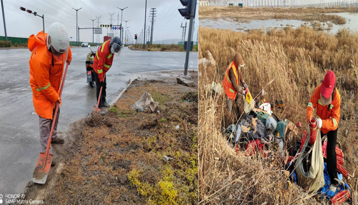 ? ? ? ?12月9日--10日雙休期間,為高質(zhì)高效完成鹽城市考察團(tuán)蒞臨徐圩石化園區(qū)活動(dòng)道路保潔工作。保潔分公司全員上下齊心協(xié)力,忘我工作,戮力奮戰(zhàn)道路一線,風(fēng)雨中盡顯敬業(yè)勞動(dòng)風(fēng)采。