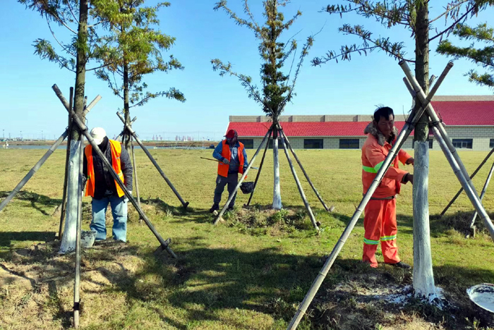 連日來,綠化分公司為為扎實做好冬季樹木養(yǎng)護(hù)工作,提高樹木的過冬、抗病和抗蟲能力,開展樹木涂白行動,為樹木披上“防寒衣”。