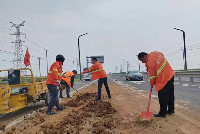 為及時快速排除道路突發(fā)障礙,保障路面車輛行人安全暢通,保潔勇士無懼高溫炎熱天氣,快速高效清理路面車輛拋灑,工作中用汗水彰顯責(zé)任與擔(dān)當(dāng)。