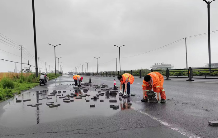中午12時,保潔分公司接到徐圩城建應(yīng)急處理電話,港前大道向南處近2000多米長路面存在大量拋灑磚塊,對過往車輛造成極大安全隱患,極易引發(fā)安全事故,嚴(yán)重影響行車安全。該分公司了解情況后,立即組織安排突擊隊員進行及時清理?,F(xiàn)場,3名身著橘紅工作服的養(yǎng)護人員首先擺放了安全警示錐,隨后徒手進行拋灑物的撿拾工作。經(jīng)過3個多小時的努力,累計搬運磚塊近800多塊,及時消除了安全隱患。該路段又恢復(fù)了往日的干凈整潔,車輛通行安全暢通。(楊波)